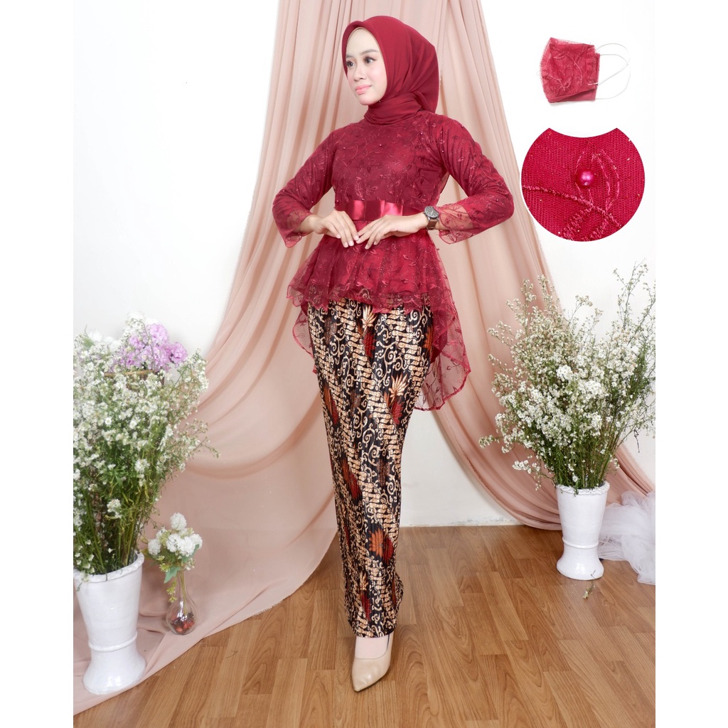 Beli ade> kebaya tulle marsya outift wisuda cantik / baju kebaya pesta modern /kebaya tulle bordir terbaru harga.